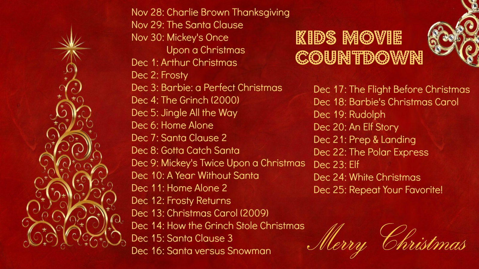 Posted on November 8, 2013 by Destiny VandeputChristmas Movie Countdown! Well, I’m moving back to Texas, SO as you could guess, this is taking up a huge part of my life… BUT I still took the time to plan out our Christmas Movie Countdown! I mean… you have to have priorities… right? đŸ™‚ Share this: Click to share on X (Opens in new window) X Click to share on Facebook (Opens in new window) Facebook Like Loading... Related