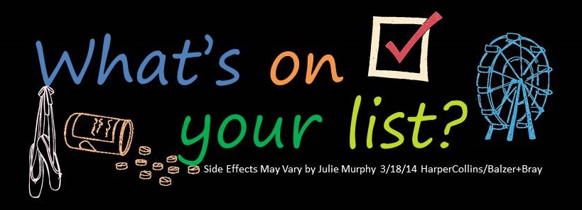 Don’t forget to get a copy of SIDE EFFECTS MAY VARY by Julie Murphy and if you life in the DFW area, stop by the Irving Library tomorrow at 2:30 to get a signed copy (you’ll be able to get it a few days before the official release! Fancy!)