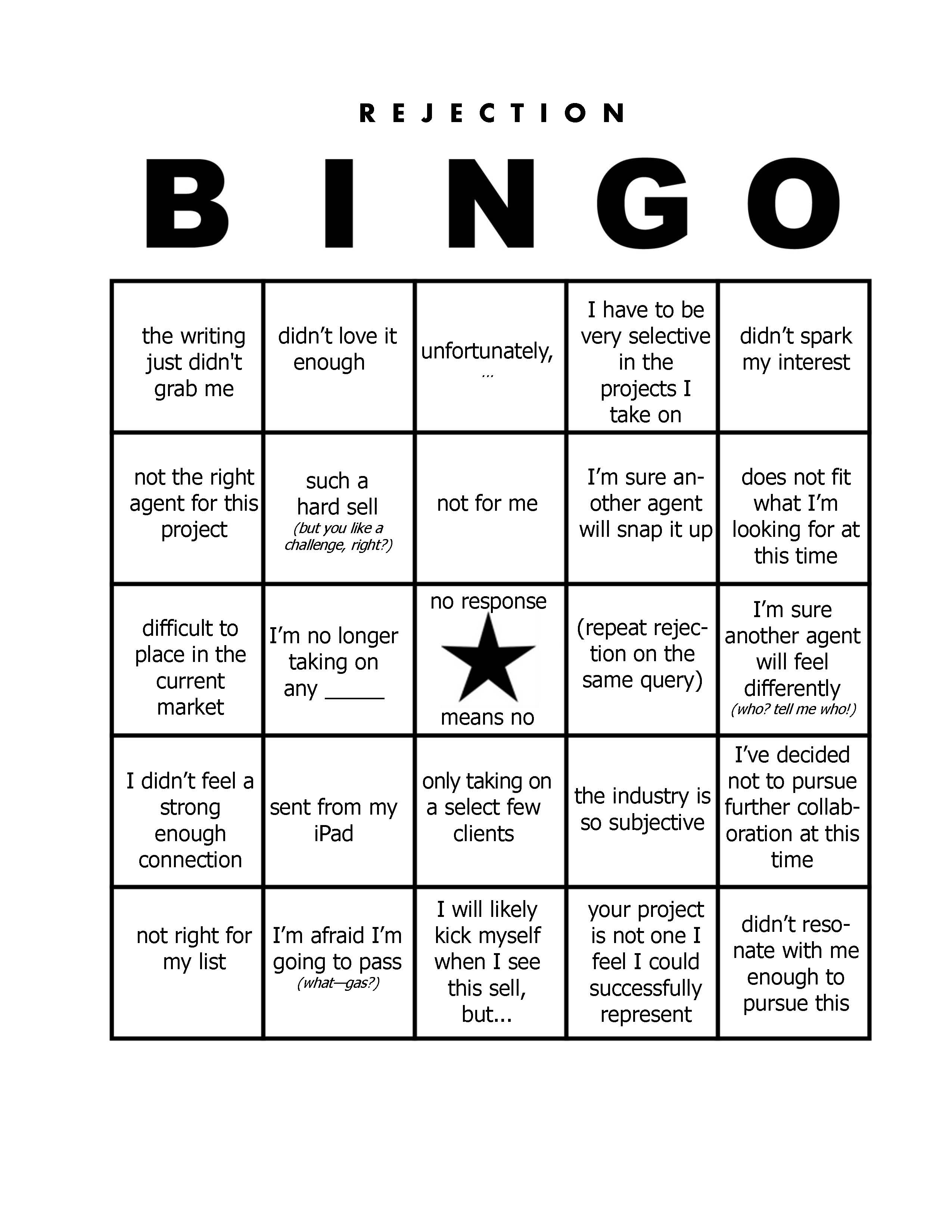 However, here are a few fun things that can help take the sting out of your rejection letters… maybe, REJECTION BINGO?